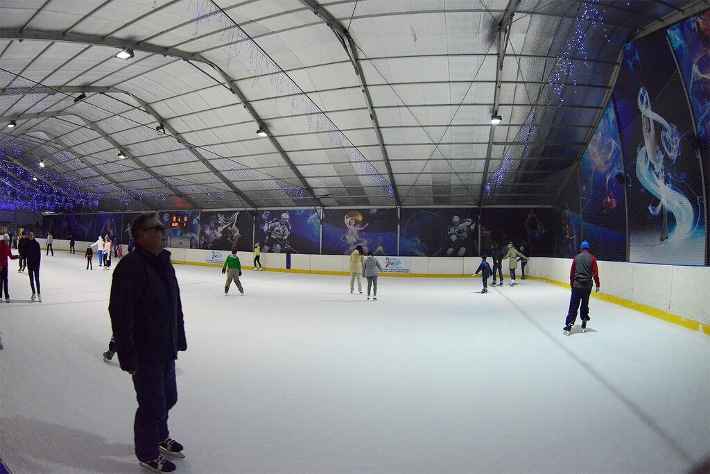На этой ледовой арене тренируются спортсмены, играют в хоккей, но здесь можно просто покататься на коньках всей семьей или компанией друзей.